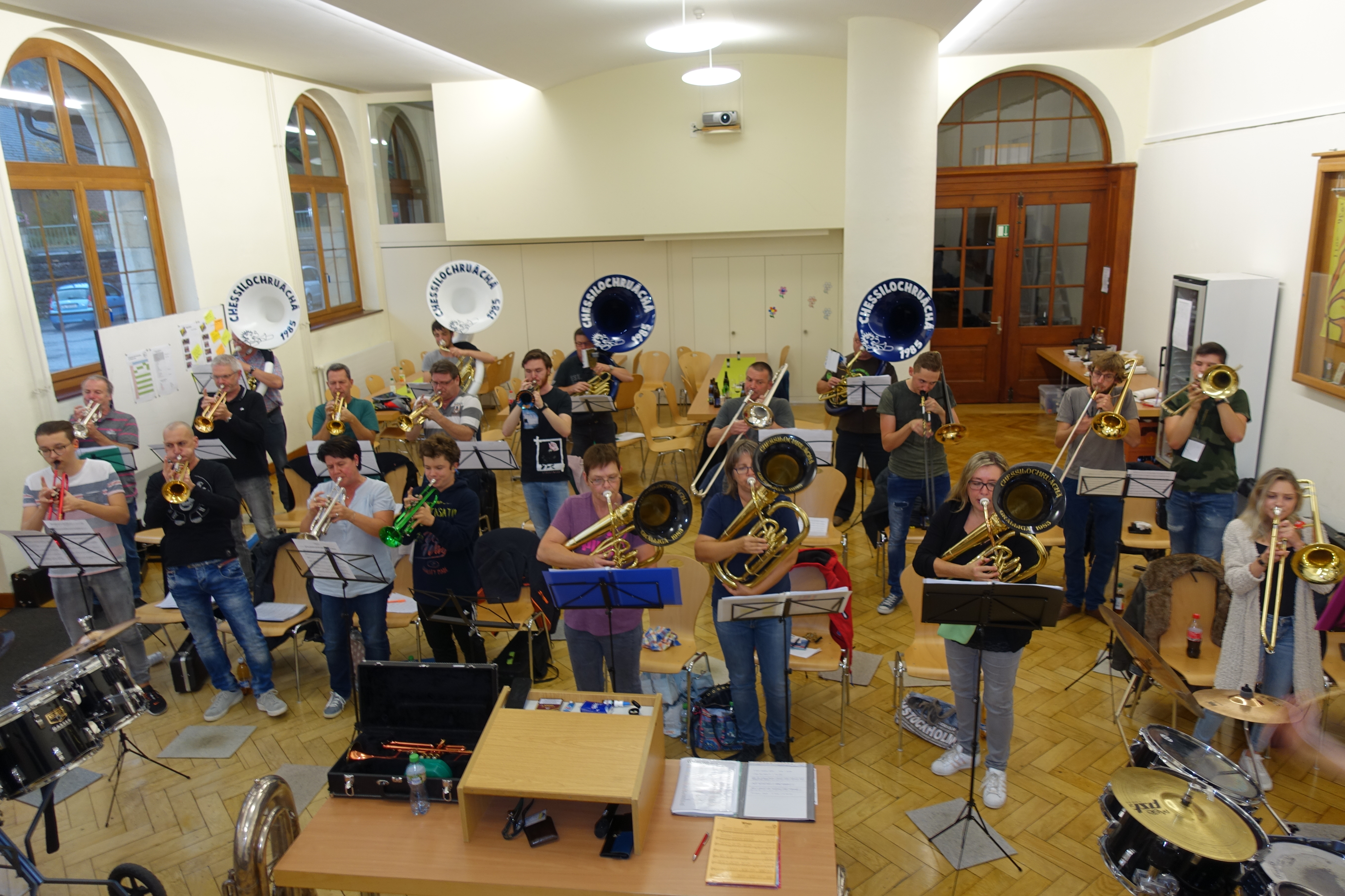 Unsere Guggenmusik besteht fast ausschliesslich aus Nichtmusikern. Mit viel Ehrgeiz und fleissigem Üben gelingt es uns jedes Jahr, in der Probenzeit von Herbst bis zur Fasnacht, immer neue, anspruchsvollere Lieder einzustudieren. Das Repertoire umfasst die klassischen Fasnachtsevergreens wie “dr Gassejätter”, Oldies wie “California Dreamin” von The Mamas & the Papas, Rock wie “We are not gonna take it” von den Twisted Sister, Rockbaladen wie „Hymn“ von Barclay James Harvest oder „Hey Jude“ von den Beatles, Deutsch-Pop wie „Sternenhimmel“ von Hubert Kah sowie moderne Chartbreaker wie “Wings” von Birdy, “Skin” von Rag’n Bone Man, „Pompeii“ von Bastille oder „Shut up and dance“ von Walk the Moon.